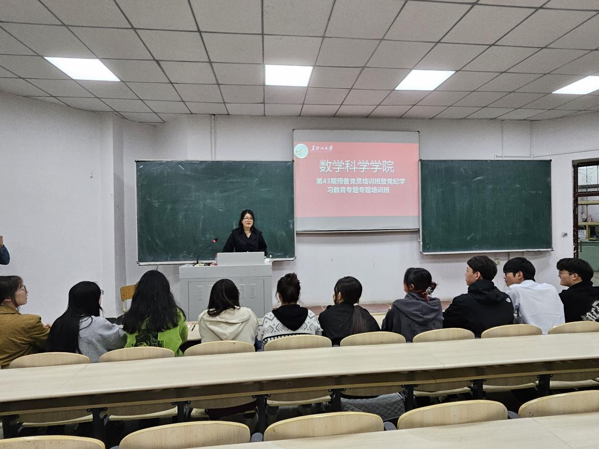 为进一步加强对预备党员的教育和培养,提高员工思想水平和政治素养,引导员工党员进一步发挥先锋模范作用,激发爱党、爱国、爱校情怀,按照员工工作部《关于举办第43期员工预备党员培训班暨党纪学习教育专题培训班的通知》要求,公海赌赌船官网jc710于4月26日18时在一号楼101开展第43期预备党员培训暨学习《中国共产党纪律处分条例》专题辅导。本次党课由公司党委副书记徐静波主讲,培训班全体学员参加。