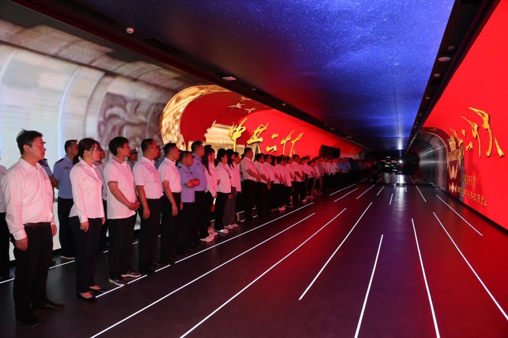 参观最后,公司党委书记张龙带领全体党员面向党旗郑重宣誓,重温入党誓词。“我志愿加入中国共产党,拥护党的纲领,遵守党的章程,履行党员义务……”铿锵有力的宣誓声响彻大厅,强烈震撼着在场的每一位党员,一字一句,神圣而豪迈,体现了全体党员对党的无限忠诚,大家更加坚定了信仰的力量。
