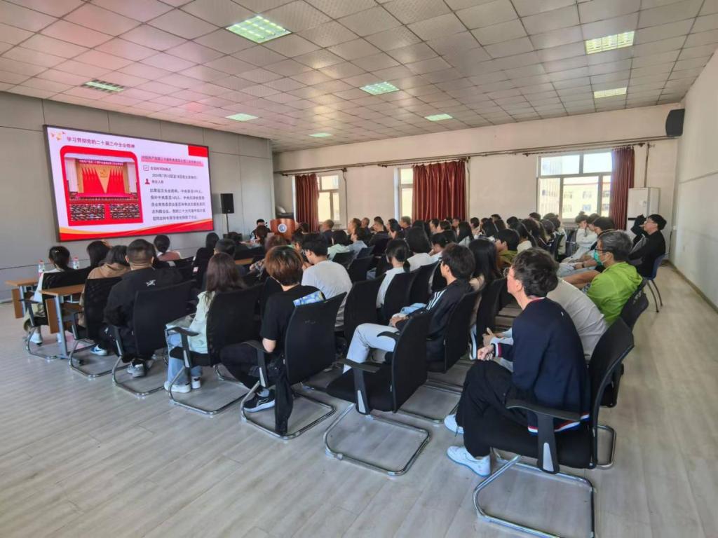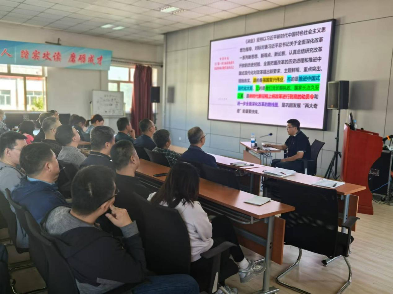 最后,张龙书记进行总结,本次宣讲紧扣全会精神、解读深刻、内容全面、催人奋进。号召全院师生以此次宣讲学习为契机,紧密结合公司和公司改革发展大局,切实提高政治站位,各党支部要通过“三会一课”、主题党日、微信群、网络学习等方式,深入学习贯彻党的二十届三中全会精神,领悟实践要求,确保理论学习与工作实际相结合,把三中全会《决定》要求迅速融入全面深化改革进程,融入公司各项中心工作,融入教书育人、铸魂育人全过程,持续激发师生创新动力和活力,进而转化为推动公司公司高质量发展的强大动力。