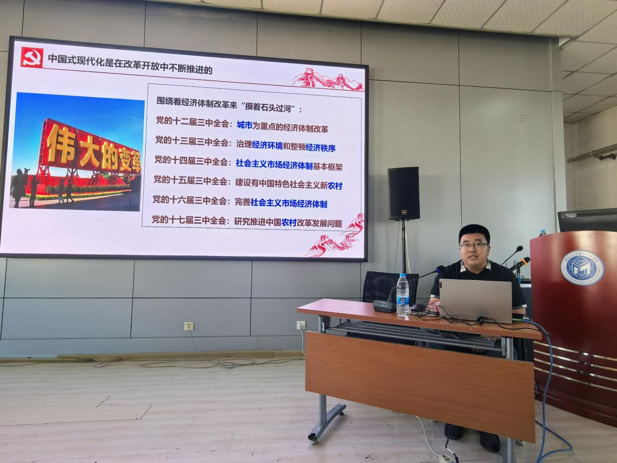 王秋教授从党的二十届三中全会的召开背景及总体要求、深刻把握党的二十届三中全会的重点内容、提高党对进一步全面深化改革的领导水平和深入把握省委贯彻落实三中全会精神的主要安排等四个方面进行重点解读。他带领大家深入分析了推进中国式现代化面临的新情况新问题,党的二十届三中全会围绕推进中国式现代化,进一步明确了全面深化改革的指导思想、总目标、“七个聚焦”、重大原则,针对经济领域、政治领域、文化领域、社会领域、生态领域、国家安全、国防和军队改革进行了系统讲解。他指出,党的二十届三中全会科学谋划,对进一步全面深化改革、推进中国式现代化作出的战略部署,是在以中国式现代化全面推进强国建设、民族复兴伟业的关键时期召开的一次十分重要的会议,深刻认识进一步全面深化改革的重要性和必要性,对于指导我们具体工作,推进改革具有重要意义。