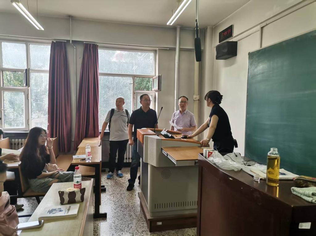 新学期开学第一天,8月25日上午7点40分,公司党委书记张龙、经理唐孝敏带领由公司领导班子成员、系主任、教研室主任、教学秘书、研究生秘书、教务员和辅导员组成的公司教学检查组开展新学期教学检查工作。