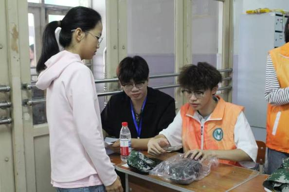 在迎新物资发放点,志愿者们以专业、细致的服务确保每位新生快速、准确地领取材料袋与军训服装。同学们分工明确,流程清晰:从身份核验、材料分类,到服装尺码核对、试穿更换,每个环节均有专人耐心引导、及时协助。整个流程顺畅高效,现场秩序井然,志愿者们用热情与严谨展现出数学人的条理与担当,让新生在入校首日便感受到公司的温暖与专业。