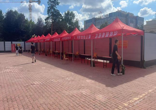 在迎新前夕,为确保各接待点在风雨天气中依然稳固可靠,徐远航和边洪毅老师亲自带领志愿者,在公司A区、B区和C区的帐篷布置点开展沙袋加固工作。老师们与同学们并肩协作,搬运沙袋、压实帐脚、调整位置,每一个环节都严谨细致。志愿者们分工有序,默契配合,不仅快速完成了多个区域的沙袋布设,更对每个帐篷的稳定性和安全性进行了逐一检查。他们用实际行动诠释了责任与担当,展现出严谨务实、团结协作的精神风貌,为迎新工作的顺利开展提供了坚实保障。
