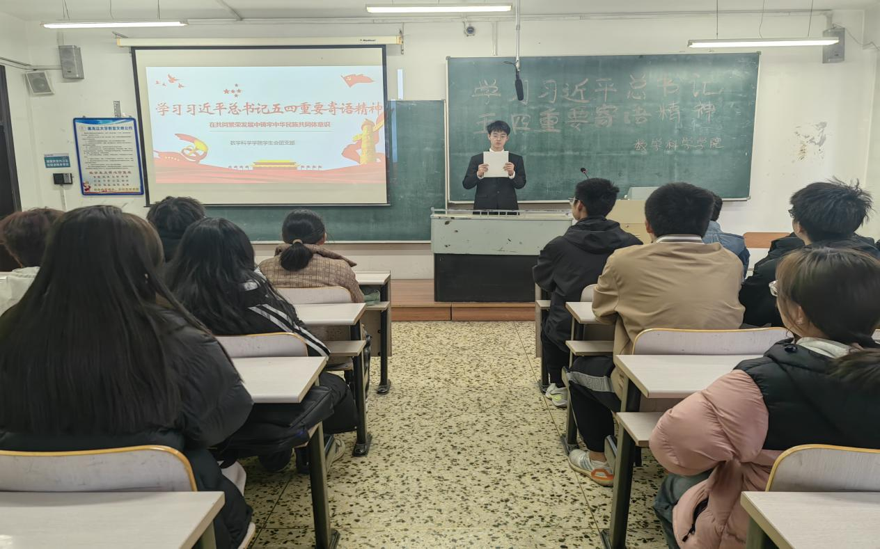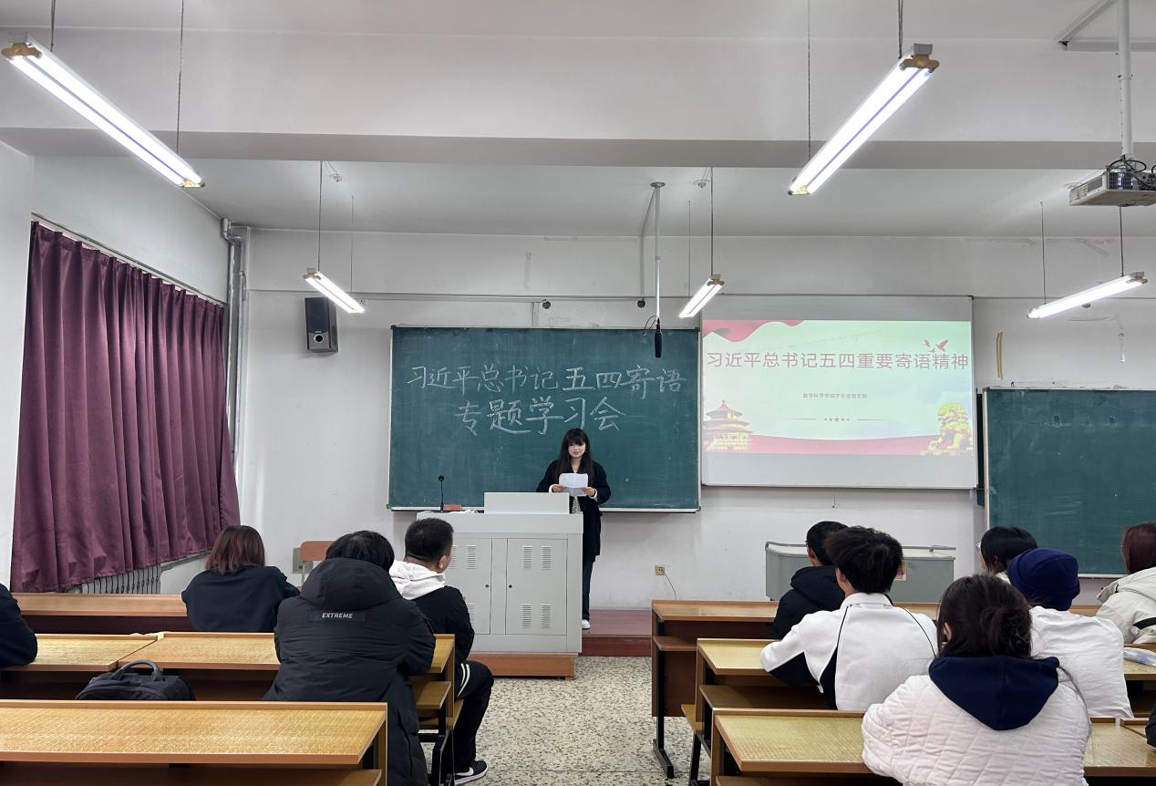 会上,大家收听收看新闻,认真学习寄语精神,备受鼓舞、倍感振奋。习近平总书记强调,“广大青年要继承和发扬五四精神,坚定不移听党话、跟党走,争做有理想、敢担当、能吃苦、肯奋斗的新时代好青年,在推进强国建设民族复兴伟业中展现青春作为、彰显青春风采、贡献青春力量,奋力书写为中国式现代化挺膺担当的青春篇章。