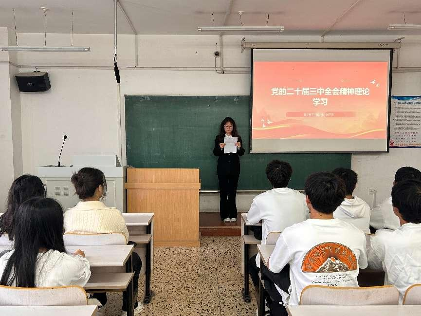 活动开始,学习部部长李雨桐详细介绍了党的二十届三中全会的背景、议程和主要成果,强调了会议对于党和国家事业发展的重要意义。团支部书记鹿玮麟领学《中共中央关于进一步全面深化改革、推进中国式现代化的决定》,阐述了进一步全面深化改革的六个原则,从经济、政治、文化、社会、生态、国防等方面介绍了进一步全面深化改革的举措,并紧密结合能公司的实际情况,提出了团支部、员工会贯彻落实的具体要求和措施。她勉励同学们要勇立潮头,主动作为,用实际行动践行“有理想、敢担当、能吃苦、肯奋斗”的青春宣言。
